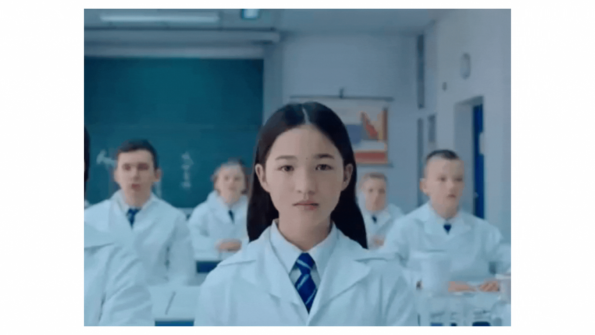 The third act, moral evaluation, claims in the video a change in societal attitudes toward gender roles and expectations, and advocates for recognizing women's achievements without emphasizing their gender, promoting the idea that women and men should compete on an equal footing. This is demonstrated visually in the video through scenes where the camera zooms out of the scenes, where previous the viewer first only saw one women, to showcase the whole surrounding, revealing more in the room and an equal number of women and men facing each other. This deliberate choice in content selection underscores the message of gender equality. Additionally, the narrator expresses a desire to move away from the need for women to be exceptional or the first in their field. The message conveyed is that women do not have to be exceptional or the first in their field to be recognized, more that they should be able to pursue their careers without gender being a determining factor.